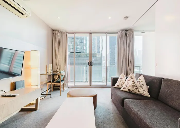 Die 85 m² große Ferienwohnung Light Airy Parking Wifi Wfh Walk To Mcec Crown Melbourne City liegt im Stadtteil Chinatown von Melbourne City in einer Entfernung von 6 Minuten zu Fuß vom South Melbourne Market.